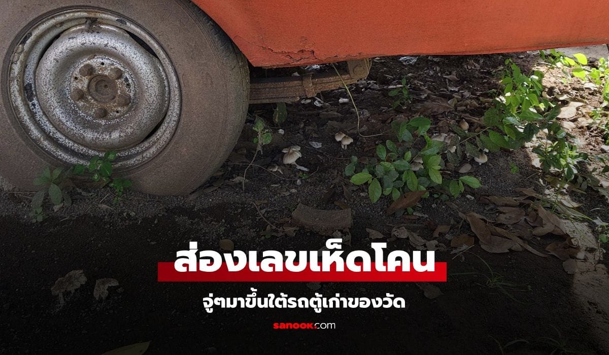 ส่อง "เลขเห็ดโคน" งอกใต้รถตู้เก่า วัดแสนสุข เมืองโคราช ชาวบ้านแห่มาสังเกตการณ์ นับมาให้แล้วมีกี่ดอก เผยทะเบียนรถวันนี้ (22 ตุลาคม) ผู้สื่อข่าวพาไปดูความอุดมสมบูรณ์ภายในวัดบ้านแสนสุข ที่ ต.ครบุรี อ.ครบุรี จ.นครราชสีมา ทำให้แม้แต่ใต้รถตู้เก่าของทางวัดที่จอดทิ้งเอาไว้ด้านหลังกุฏิสงฆ์หลังหนึ่ง เกิดมี เห็ดโคน หรือ เห็ดปลวก ซึ่งเรียกได้ว่าเป็นราชาแห่งเห็ด เพราะมีรสชาติดีเป็นที่นิยม และหาได้ยากมาในแหล่งชุมชนที่ไม่ใช่ป่าอุดมสมบูรณ์แต่เกิดขึ้นมากลุ่มใหญ่ นับได้เท่าที่โผล่พื้นดีจำนวน 26 ดอก และเชื่อว่ายังมีอยู่ใต้ดินอีกจำนวนมาก ทั้งที่ทั่วบริเวณวัดที่มีสภาพเป็นป่ามีต้นไม้อีกหลายไร่ แต่เห็ดโคนทั้งหมดกลับงอกอยู่เพียงแค่ใต้รถตู้เก่าสีส้ม หมายเลขทะเบียน 5 ม 4824 กรุงเทพมหานคร เท่านั้น สร้างความประหลาดใจให้กับผู้พบเห็นอย่างมาก